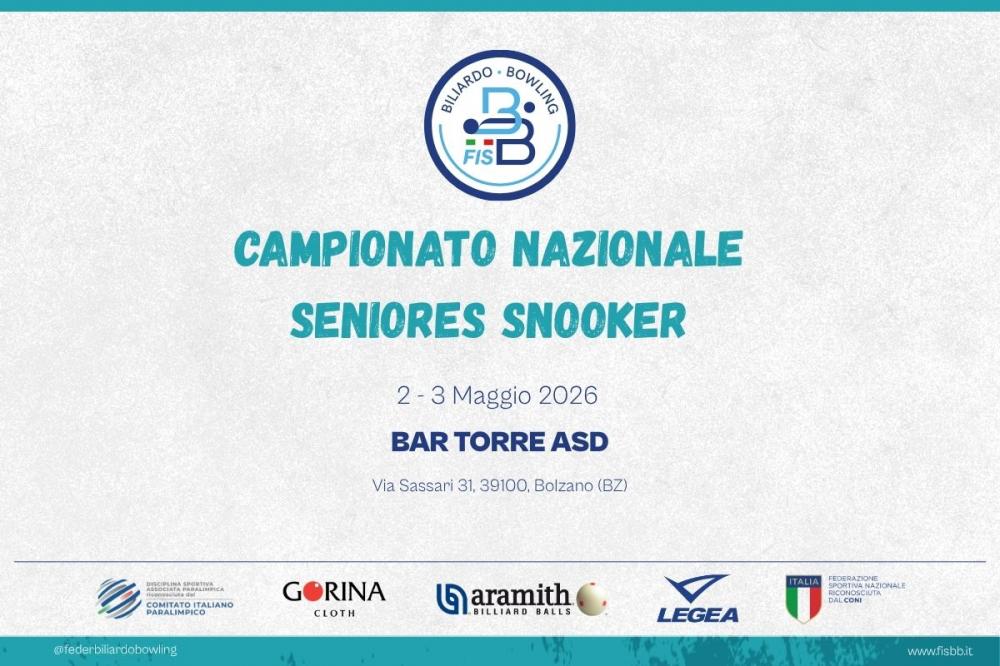 09 Aprile 2026 26° CAMPIONATO ITALIANO – 6° PROVA NBC SCHIO: APERTURA ISCRIZIONI La 6ª Prova del Circuito National Billiard Challenge, valida per il 26° Campionato Italiano 2025–2026, si svolgerà dal...