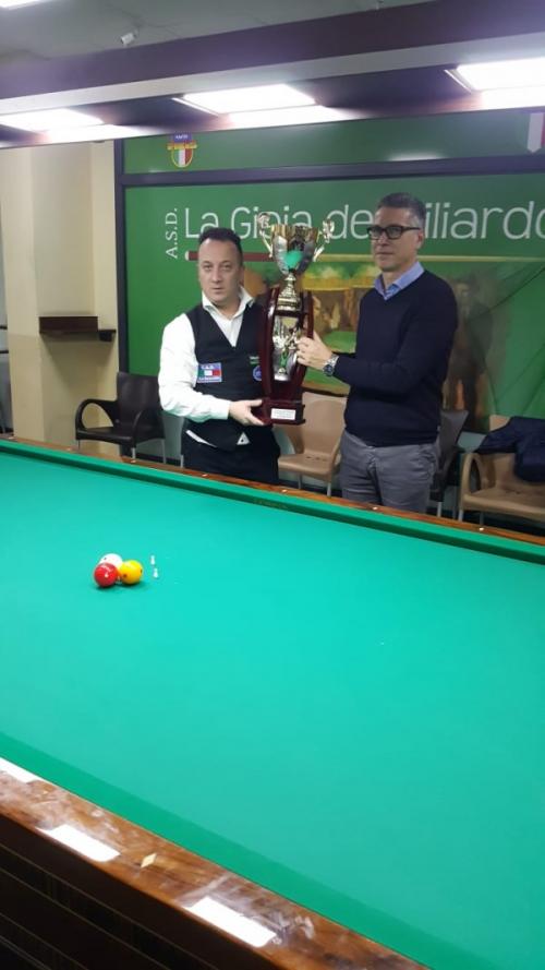 Si è conclusa la gara territoriale organizzata dall'11 al 17 marzo scorso dall'A.s.d. "La gioia del biliardo" di Gioia Tauro (RC), che ha visto la vincita del Sig. Gianfranco De Marco, del CSB "La Bricolla" di Spezzano Albanese (CS), nella foto premiato dal presidente del CSB ospitante, Sig. Edoardo D'Agostino.