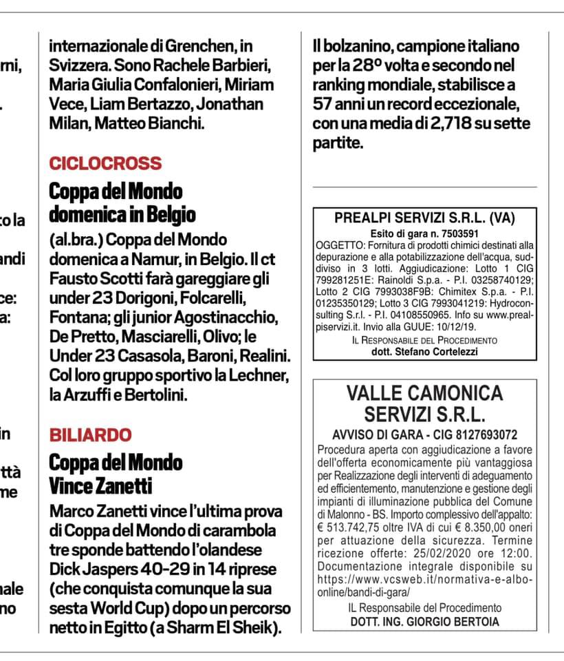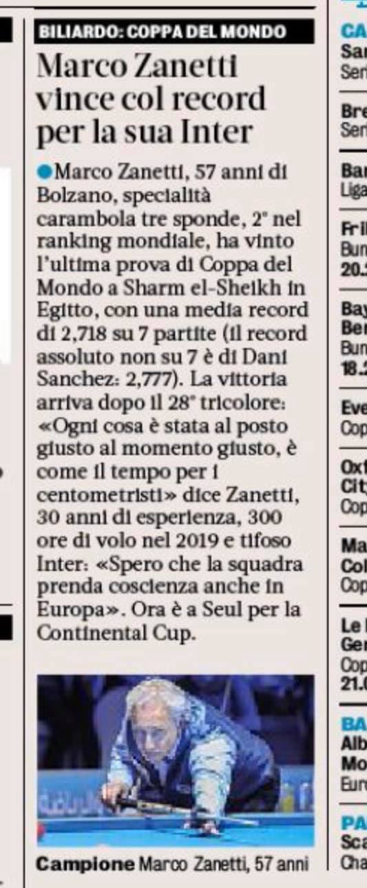 Zanetti ha conquistato la finalissima contro l’olandese Jaspers Dick 40 – 29 in 14 riprese, precedentemente aveva vinto la semifinale contro il francese Jeremy Bury 40-28 in 13 riprese con serie da 11 carambole.