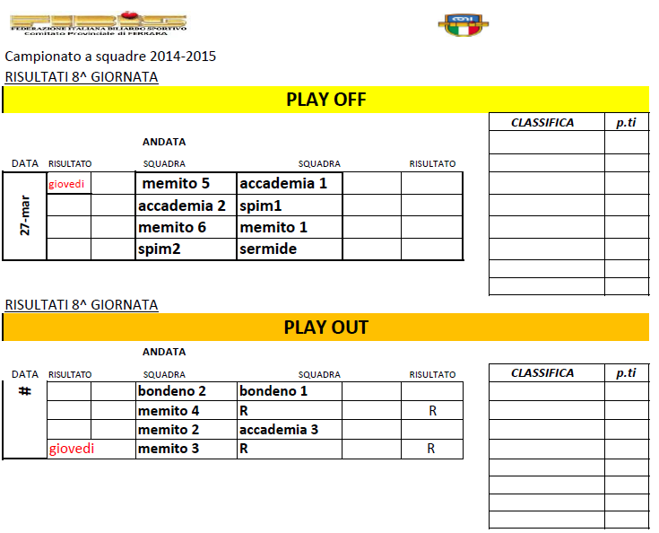 7^ GG RIS OFF E OUTCLASSIFICHE PLAY OFF OUT 2014 15COMUNICAZIONI RINVII
