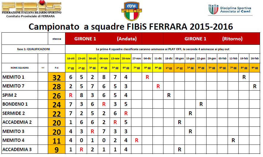 7^ GIORNATA G 1 E G 2 2015 2016CLASSIFICHE SQUADRE 2015 2016 DOPO 6^ GGRISULTATI G 1 E G 2 2015 2016 DOPO 6^ GIORNATA