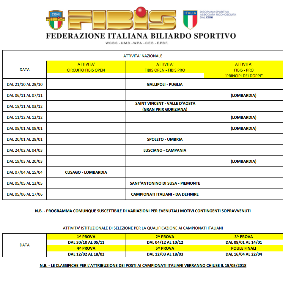 GARE - ATTIVITA' NAZIONALE E ISTITUZIONALE 2017-18