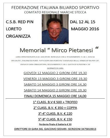 Memorial "MIRCO PIETANESI" Gara Open C.S.B. Red Pin Loreto (AN)