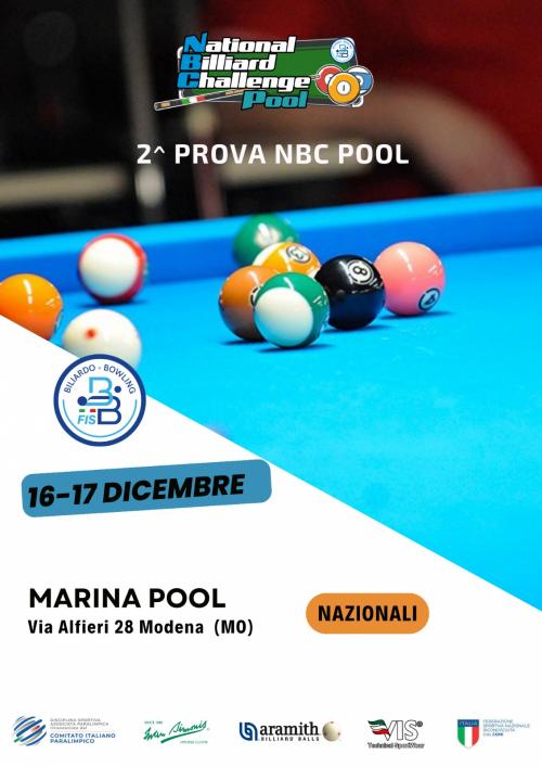 Sono, infatti, aperte le iscrizioni per la seconda prova NBC Pool riservata alla sola categoria dei Nazionali, in programma sabato 16 e domenica 17 dicembre presso l’ASD Marina Pool di Modena.