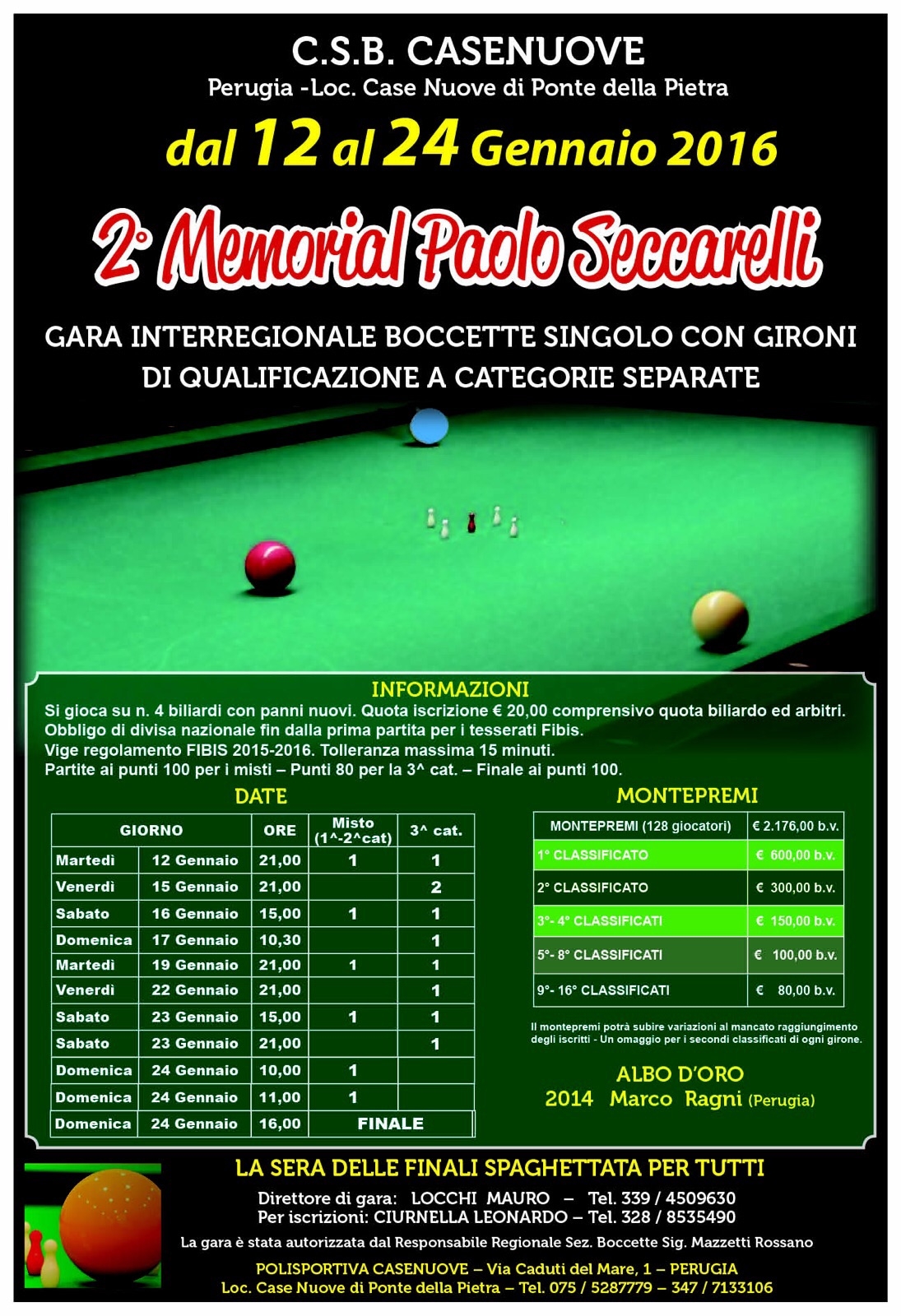 2° Memorial Paolo Seccarelli (12-24 Gennaio 2016)