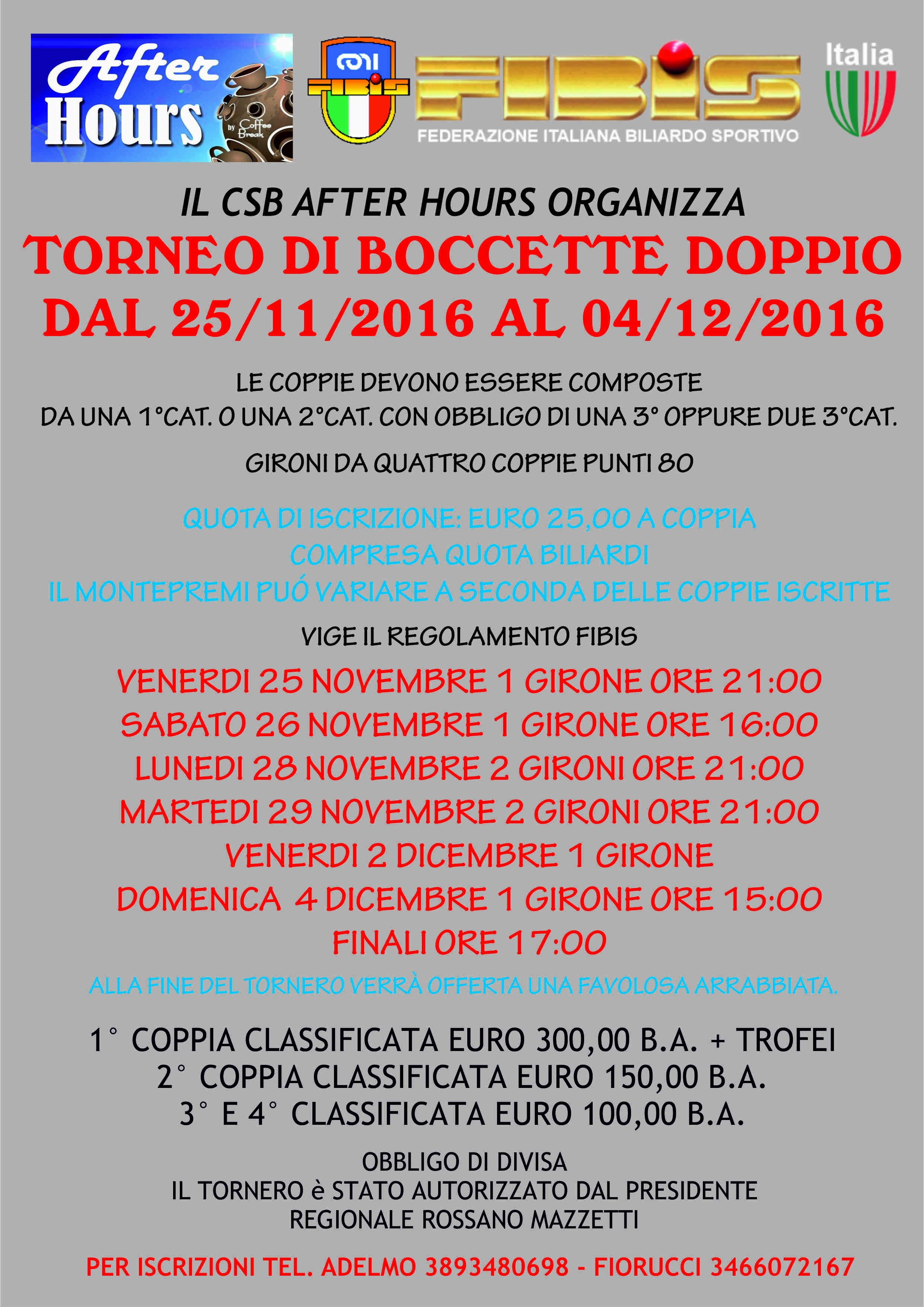 Torneo a coppie al C.S.B. AFTER HOURS (locandina)